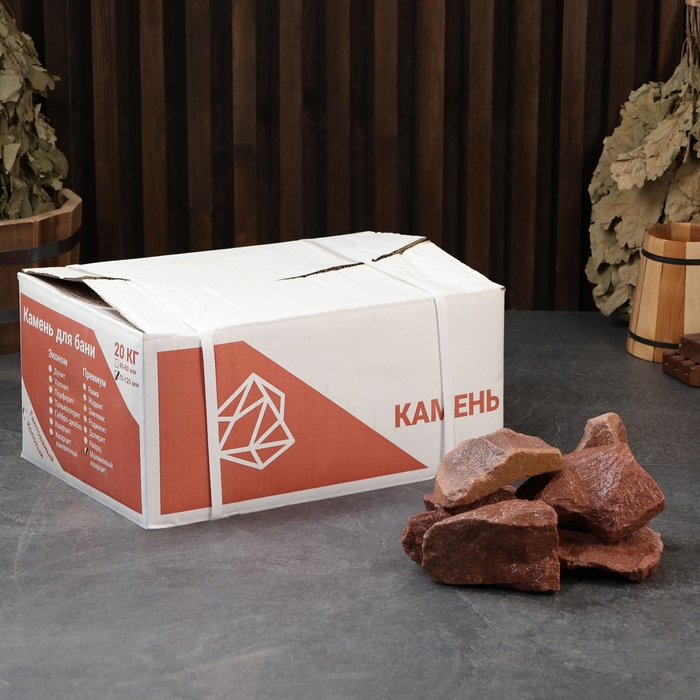 Камень для бани "Малиновый кварцит" колотый 20 кг, фракция 70-120 мм
