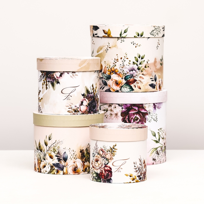 Набор шляпных коробок 5 в 1" Нежность" , 23 х23 - 15 х 15 см