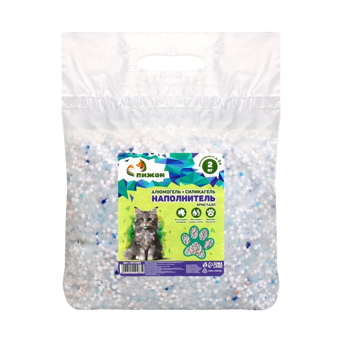 Наполнитель для кошачьих туалетов "Пижон", 1 кг Алюмогель + 1 кг силикагель кристалл до 5 л