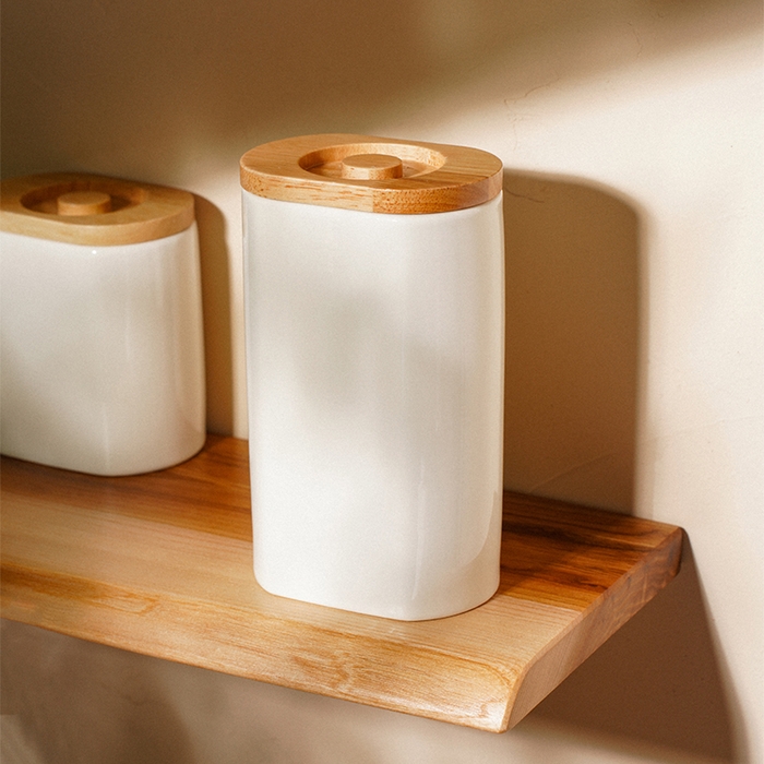 Изготовленная из высококачественного фарфора и оснащенная герметичной крышкой из дерева, эта банка надежно защищает содержимое от влаги и посторонних запахов. Благодаря герметичности крышки и возможности мыть в посудомоечной машине, использование банки максимально удобно и практично.