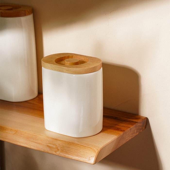 Благодаря овальной форме и гладкой текстуре, банка прекрасно впишется в любую кухню. Герметичная деревянная крышка надёжно защитит содержимое от влаги и посторонних запахов, обеспечивая длительное хранение ваших любимых круп, специй или сахара. А возможность мытья в посудомоечной машине делает уход за ней максимально простым и удобным.