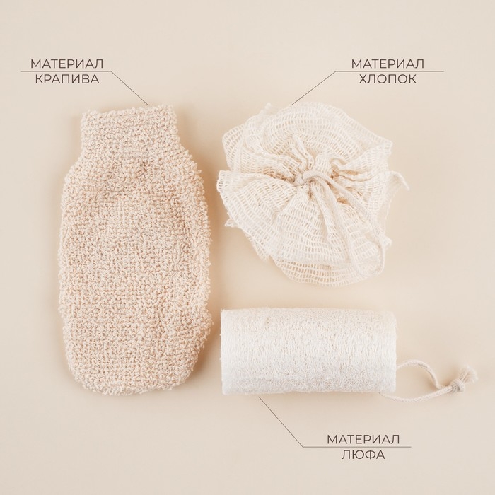 Набор для ванной SL Home «Ортика», 3 мочалки: розочка, варежка, люффа