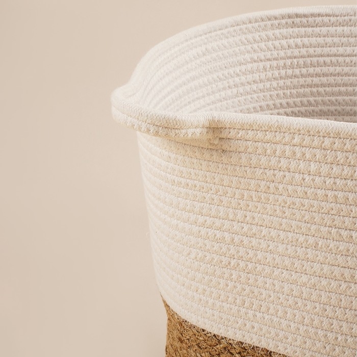 Главные преимущества этой корзины — её экологичность, лёгкость и удобство в использовании. Она оснащена прочными ручками, которые облегчают её переноску, а благодаря отсутствию крышки, доступ к белью становится ещё удобнее. Цветовая гамма корзины (бежевый и белый) легко сочетается с любым декором, добавляя в помещение уют и естественность.
