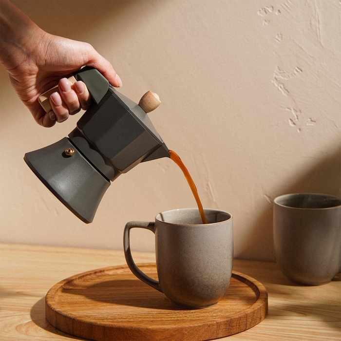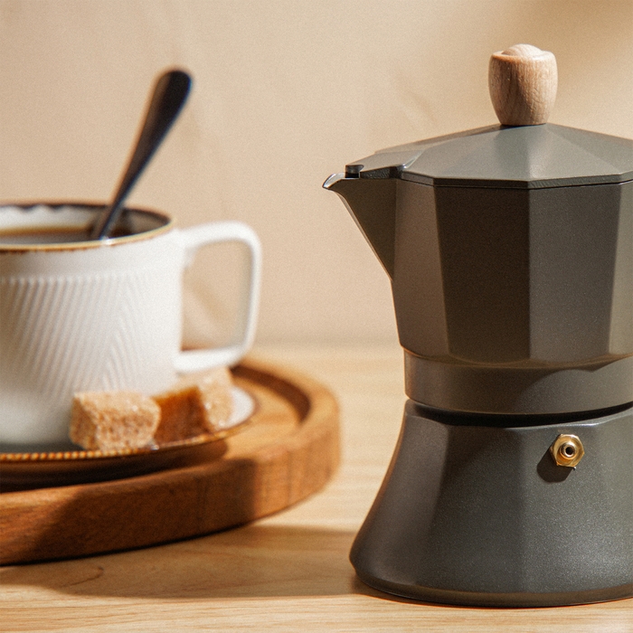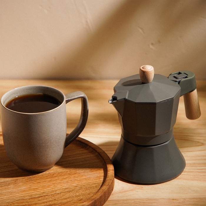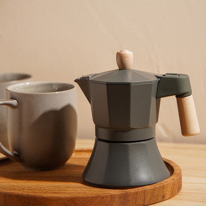 Для истинных ценителей кофе, которые предпочитают утреннюю бодрость и уют в каждой чашке, гейзерная кофеварка Ферамо в изысканном оливковом цвете станет незаменимым спутником на кухне. Этот элегантный прибор, рассчитанный на 150 мл, готовит до трёх порций ароматного эспрессо, сохраняя насыщенность и вкус каждого зёрнышка.
