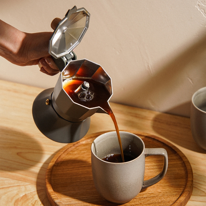 Миниатюрный размер (11x15,5x12 см) делает кофеварку идеальным выбором для компактных кухонь и путешествий, а прочный алюминиевый корпус гарантирует долговечность и легкость в уходе.