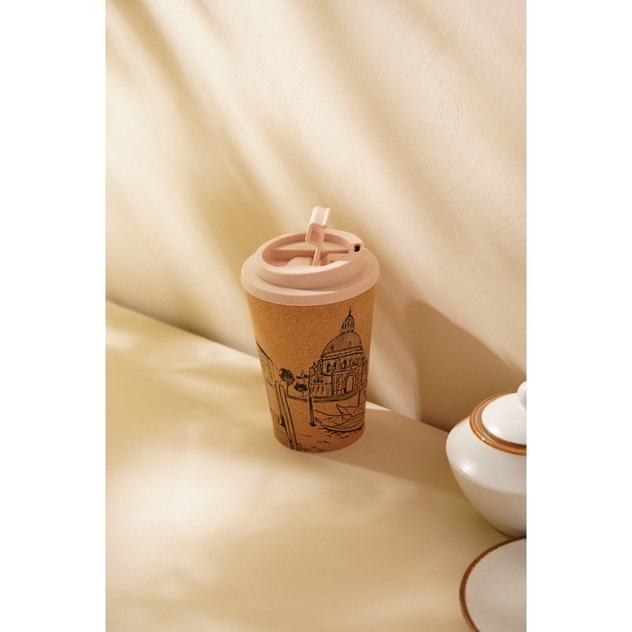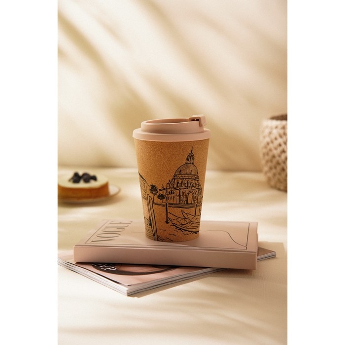 Стакан для кофе с крышкой SL Home «Венеция», пробковый, 350 мл, 9,5×9,5×14,5 см, цвет бежевый