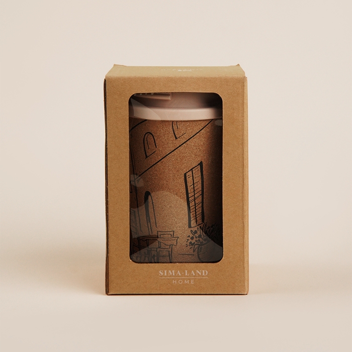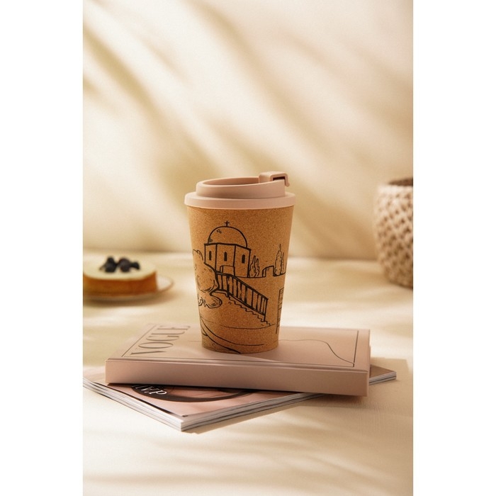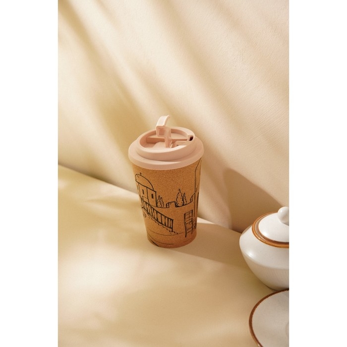 Стакан для кофе с крышкой SL Home «Тира», пробковый, 350 мл, 9,5×9,5×14,5 см, цвет бежевый