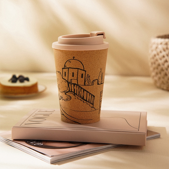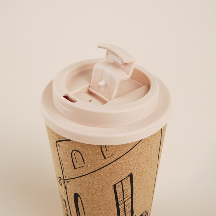 Уникальная пробковая крышка не только предотвращает проливание, но и придает стакану натуральный и теплый внешний вид. Его объем в 350 мл идеально подходит для утреннего кофе или чая, которые вы можете взять с собой в офис или на прогулку.