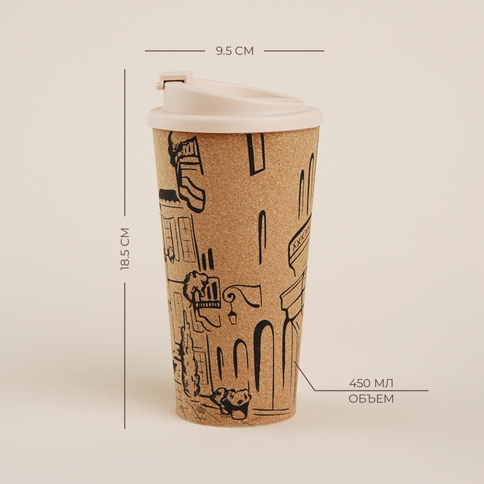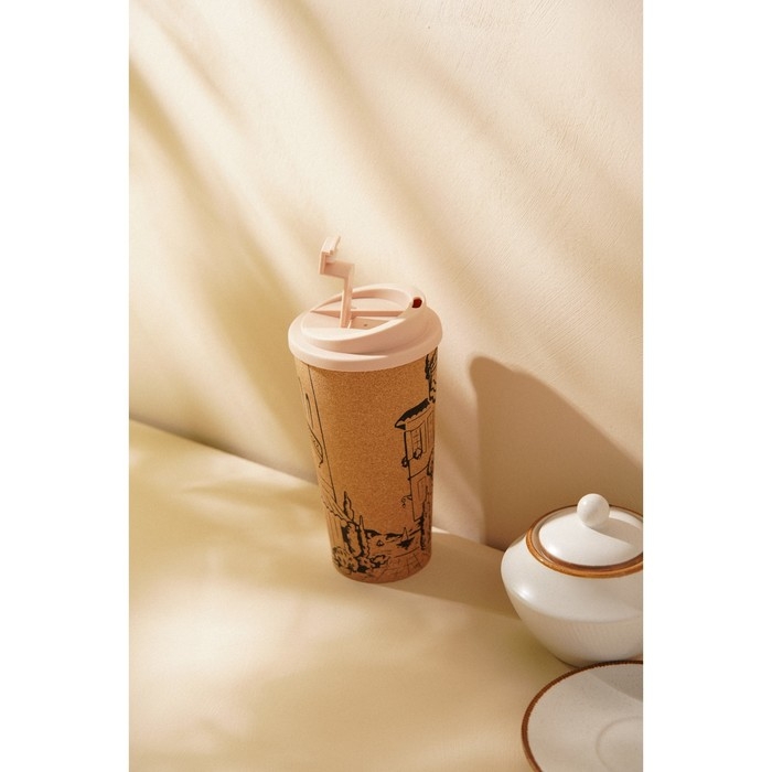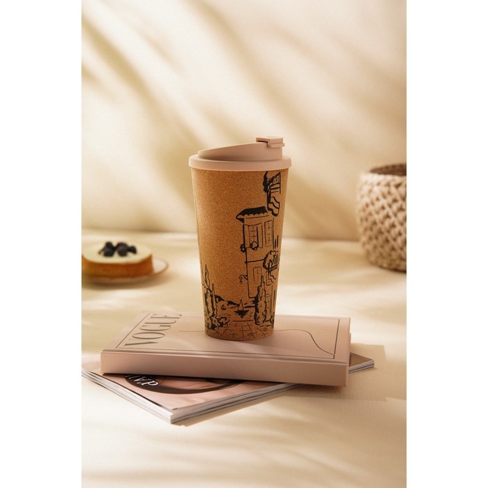 Стакан для кофе с крышкой SL Home «Севилья», пробковый, 450 мл, 9,5×9,5×18,5 см, цвет бежевый