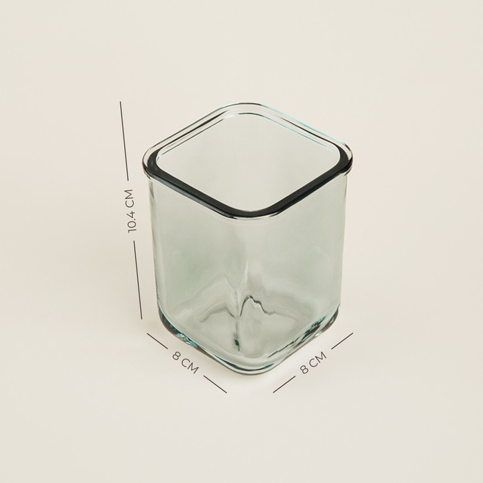 Выполненный из прочного стекла, этот стакан отличается строгой квадратной формой и прозрачным дизайном, который легко вписывается в любой интерьер ванной комнаты. Его габариты — 8x8x10,4 см — идеально подходят для компактного размещения на раковине или полочке, не занимая лишнего пространства.