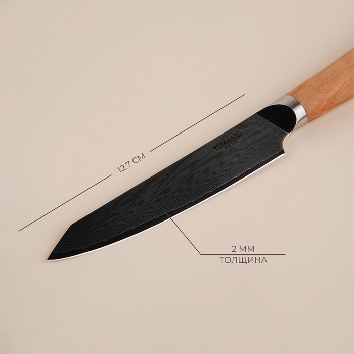 Нож кухонный SL Home «Оливия», универсальный, лезвие 12,7 см, дамасская сталь, цвет коричневый