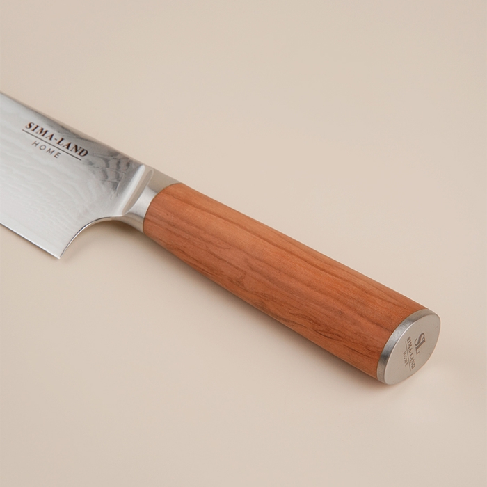 Эргономичная деревянная ручка в классическом коричневом цвете не только удобна в использовании, но и придаёт ножу стильный внешний вид, делая его идеальным дополнением любой кухни. Сбалансированный дизайн позволяет легко и комфортно работать с ножом на протяжении долгого времени, не ощущая усталости.