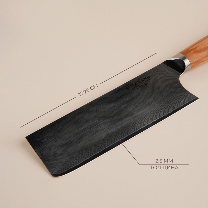 Нож кухонный SL Home «Оливия», топорик, лезвие 17,78 см, дамасская сталь, цвет коричневый