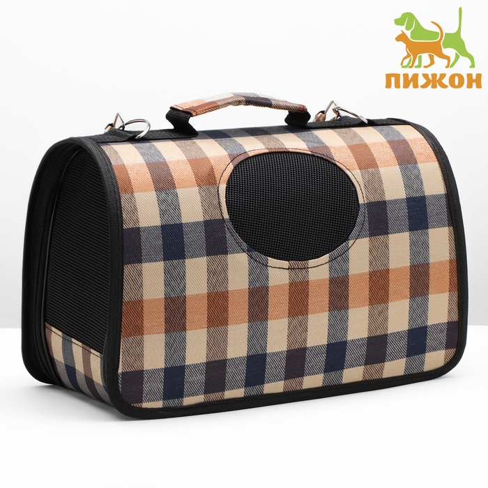 Сумка-переноска каркасная со шторкой, размер S, 37 х 20х 24 см, клетчатая