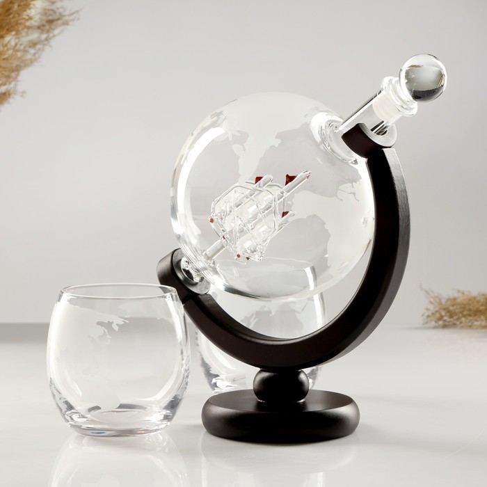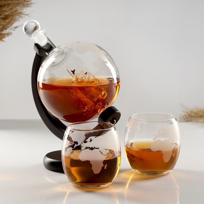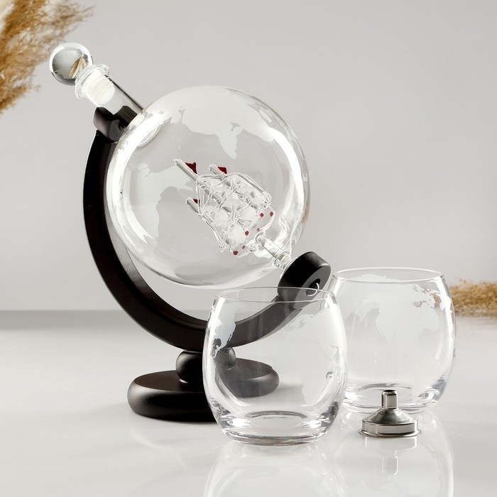 Мини-Бар Путешествия, на 2 персоны, штоф - 1000 мл, бокалы - 340 мл, 13 х 13 х 24 см