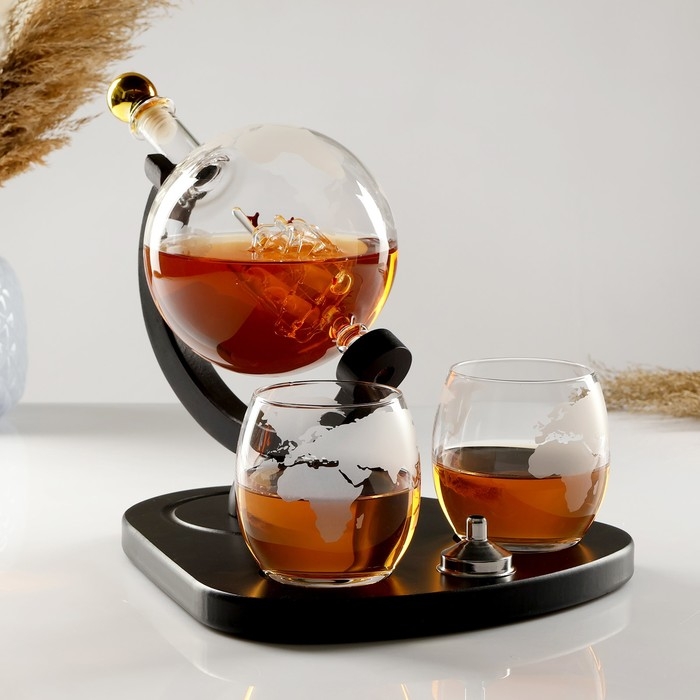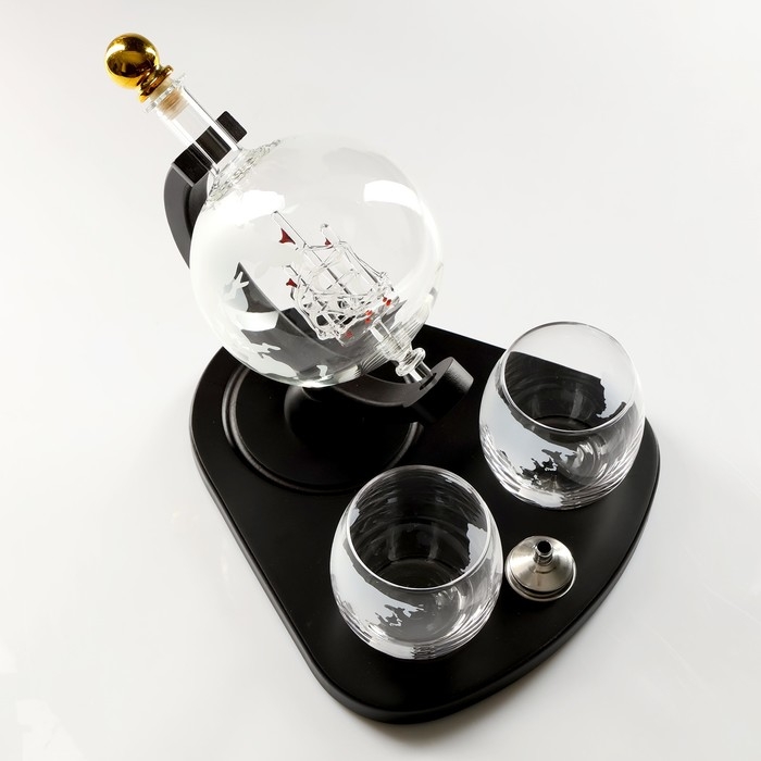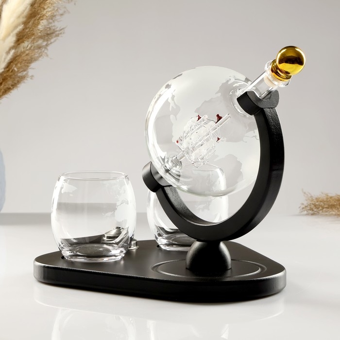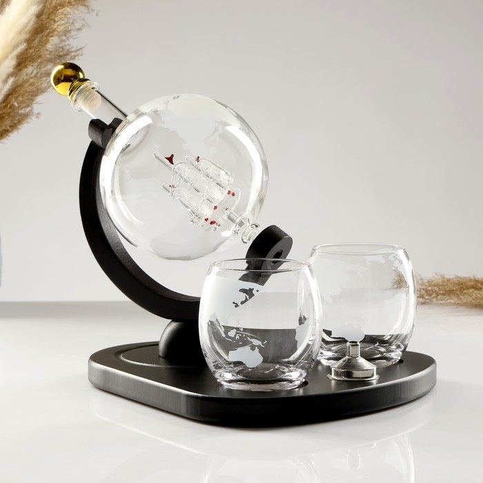 Мини-Бар Путешествия, на подставке, штоф - 930 мл, бокалы - 330 мл, 23,5 х 25,5 х 23 см