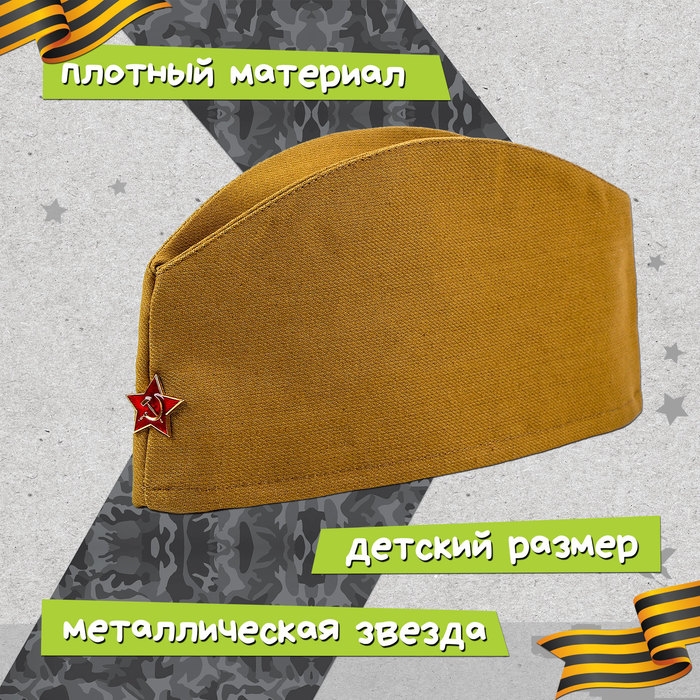 - Пилотка размером 54–56 оснащена металлической звездой, что подчёркивает принадлежность к военной тематике.