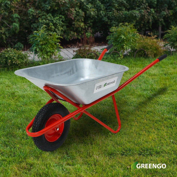 Тачка строительная, 1 пневмоколесо, груз/п 200 кг, объем 110 л, оцинкованный кузов 0,8 мм, Greengo