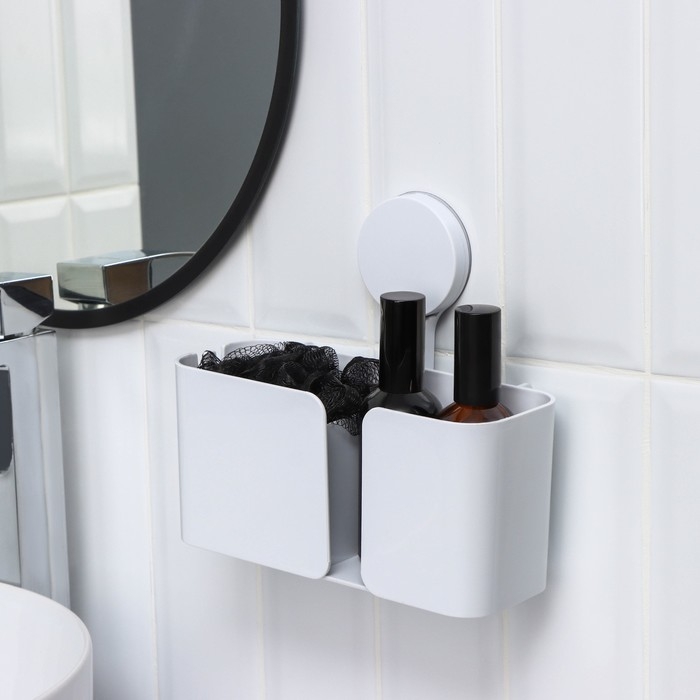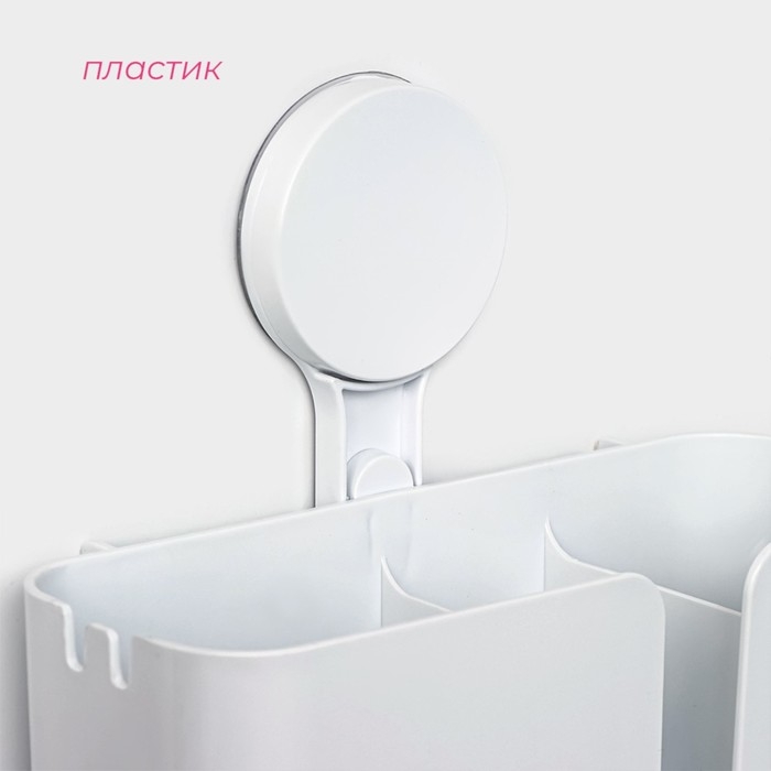 Держатель для ванных принадлежностей на липучке Доляна, 21×19×9 см, цвет белый