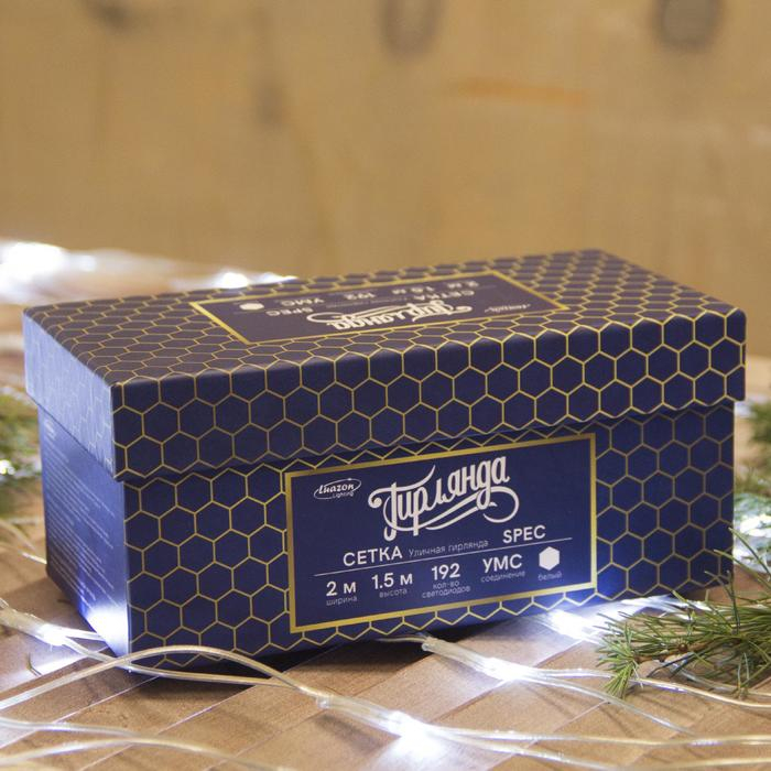 Гирлянда «Сеть» 2 × 1.5 м, IP44, УМС, прозрачная нить, 192 LED, свечение белое, 220 В