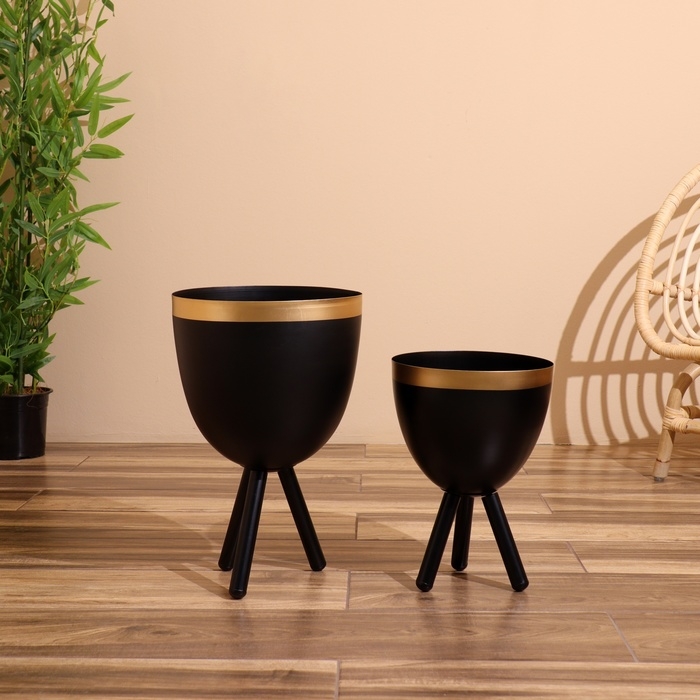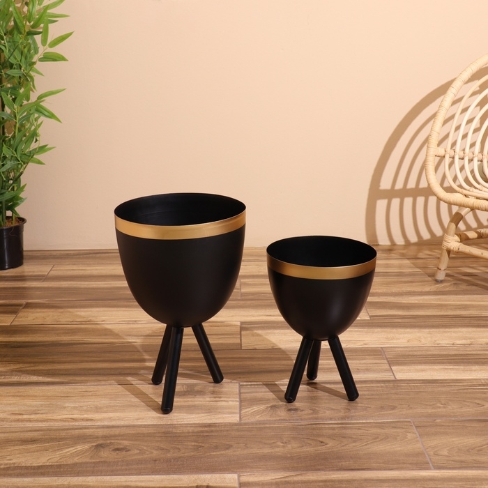 Кашпо на подставке "Блэки" металл (набор 2 шт), диаметр 28 и 23 см