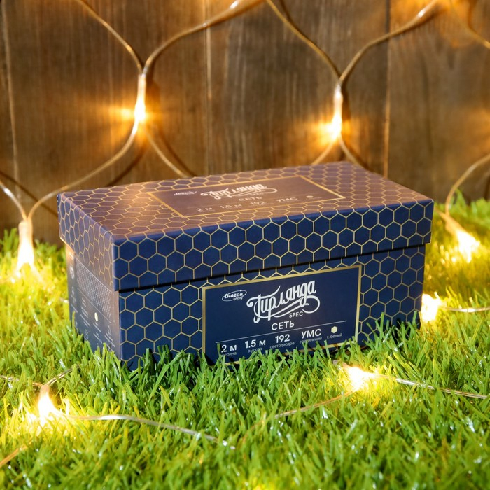 Гирлянда «Сеть» 2 × 1.5 м, IP44, УМС, прозрачная нить, 192 LED, свечение тёплое белое, 220 В