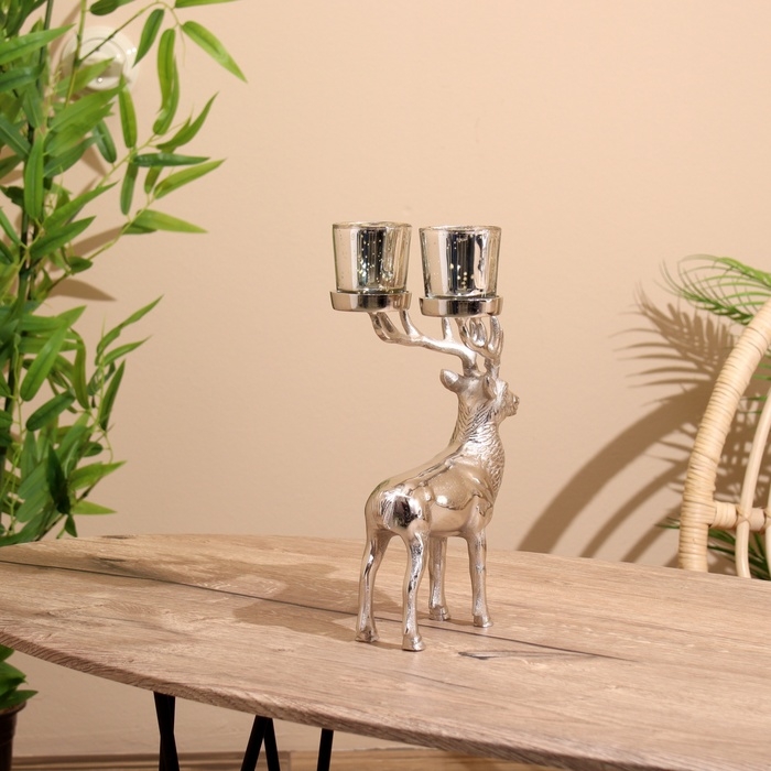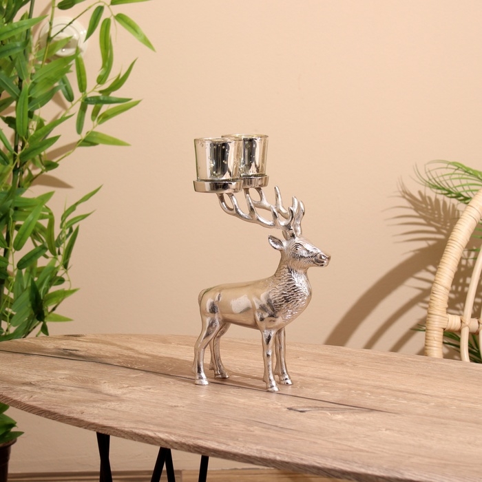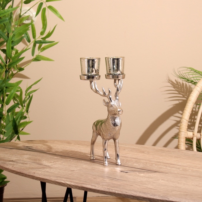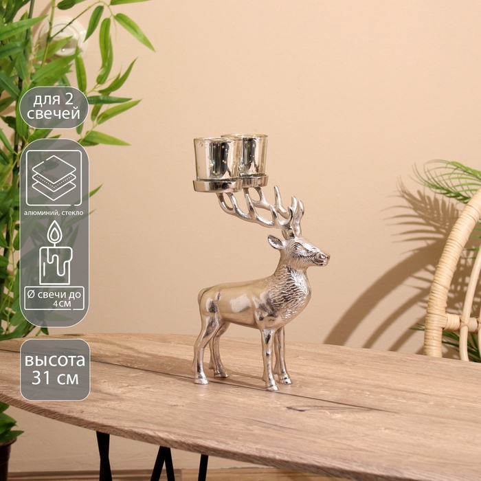 Подсвечник на 2 свечи "Олень" алюминий 15х18х31 см