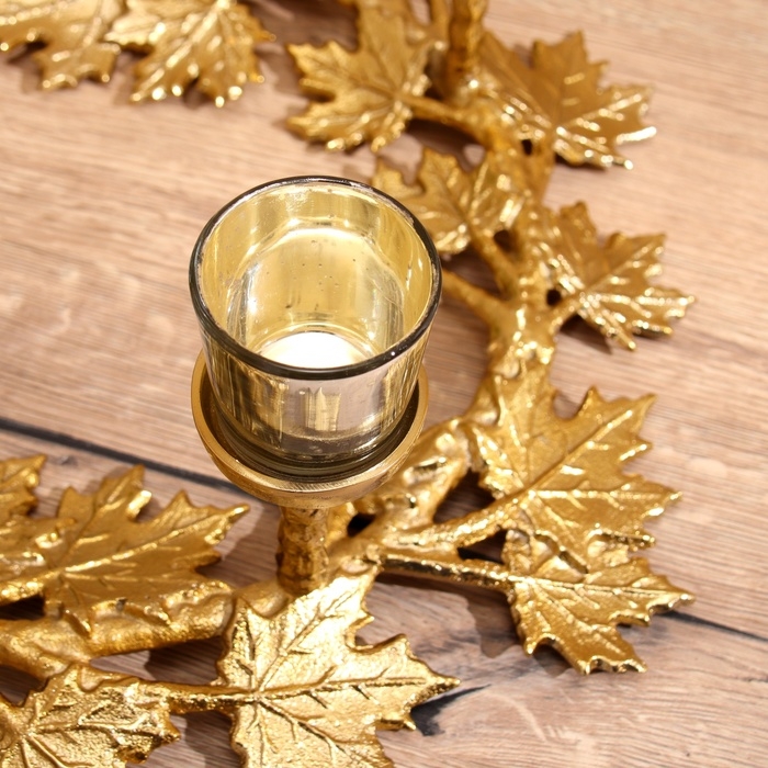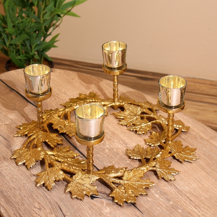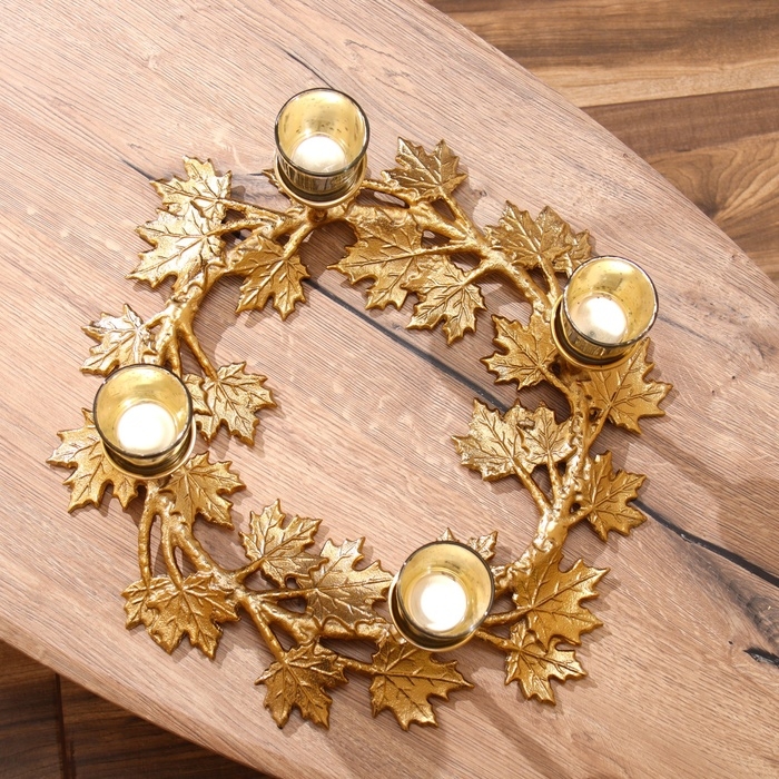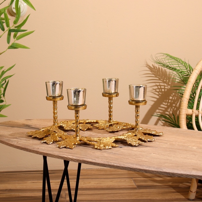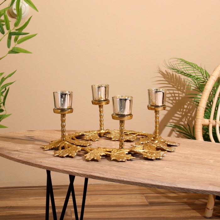 Подсвечник на 4 свечи "Кленовые листья" алюминий 46х46х18 см