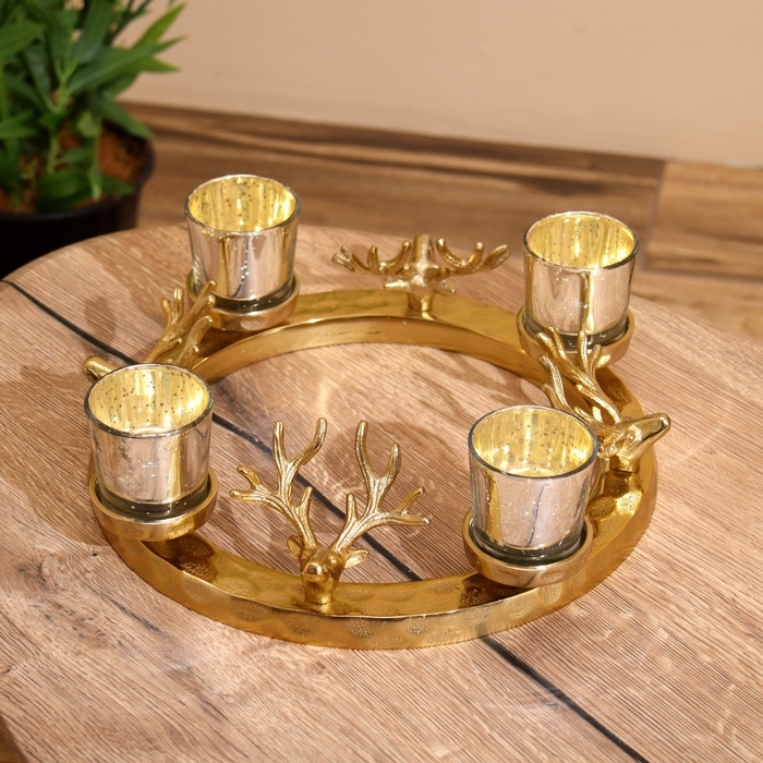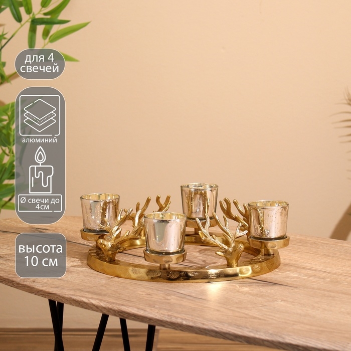 Подсвечник на 4 свечи "Рожки" алюминий 30х30х10 см