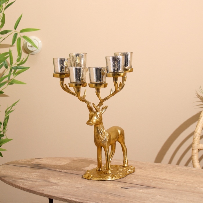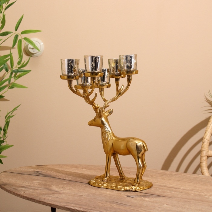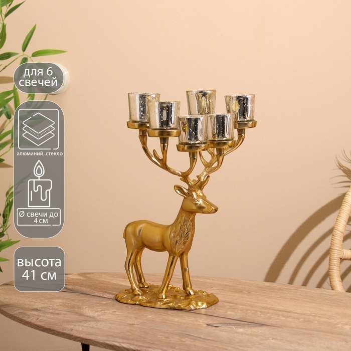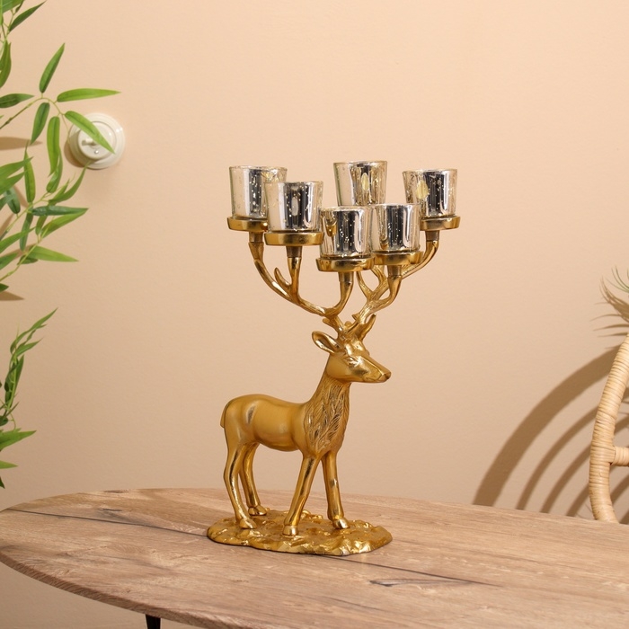 Подсвечник на 6 свечей "Олень" алюминий 23х28х41 см