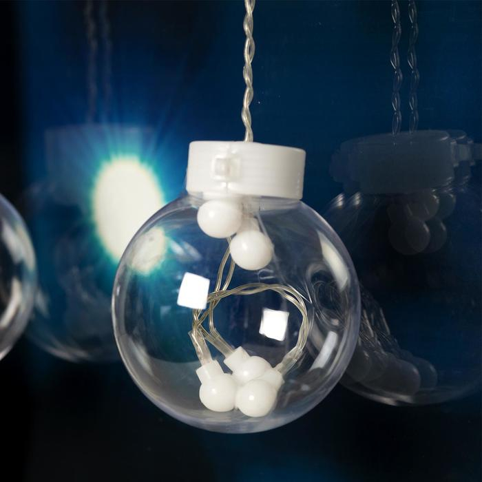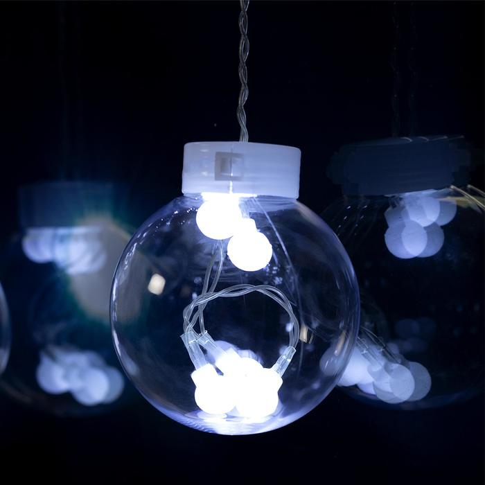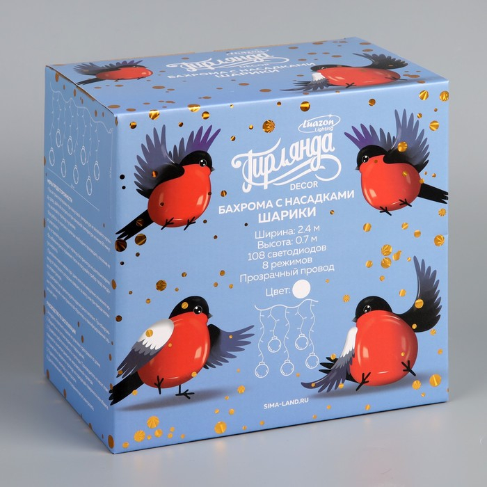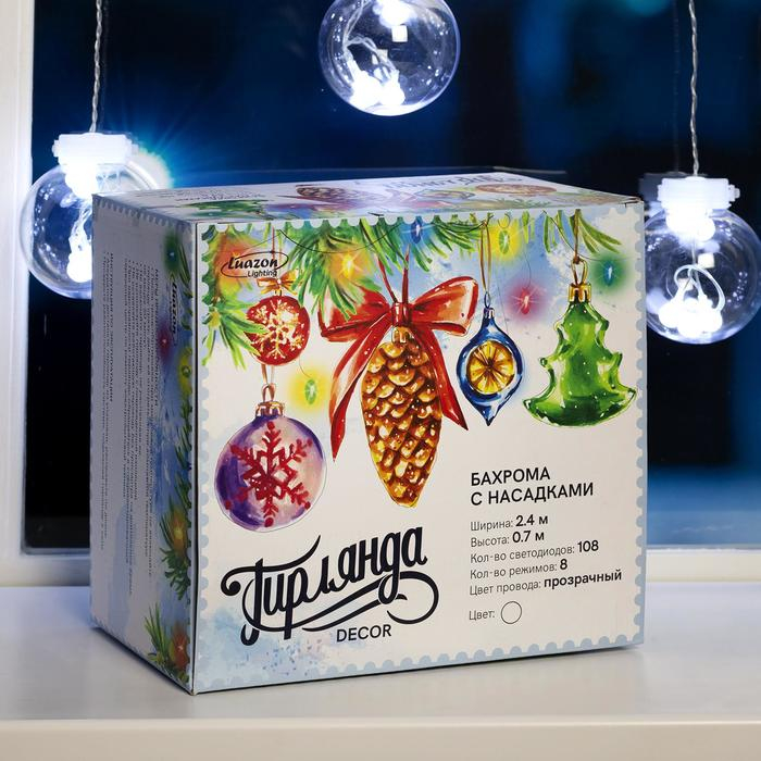 Гирлянда «Бахрома» 2.4 × 0.7 м с насадками «Шарики», IP20, прозрачная нить, 108 LED, свечение белое, 8 режимов, 220 В