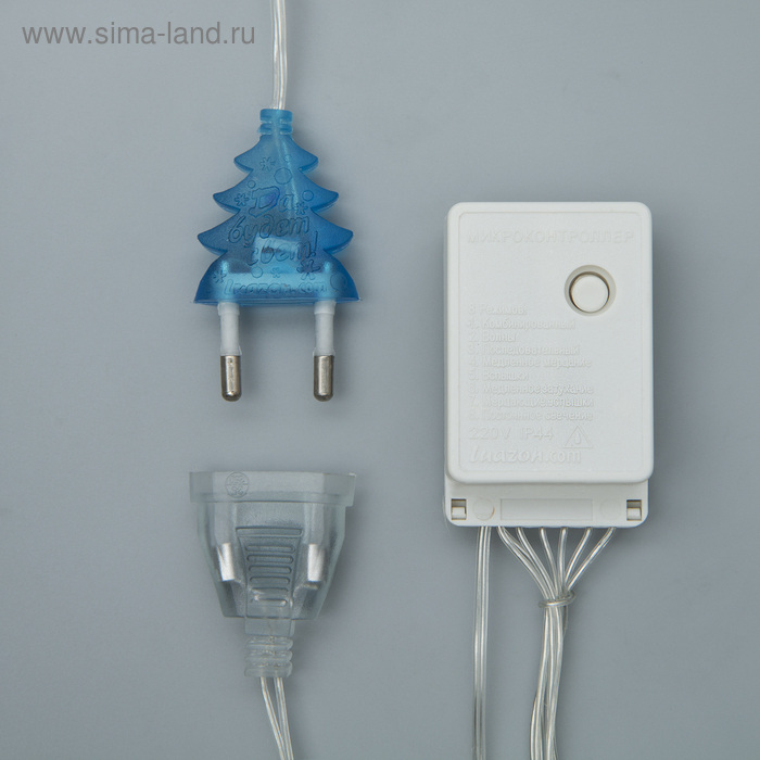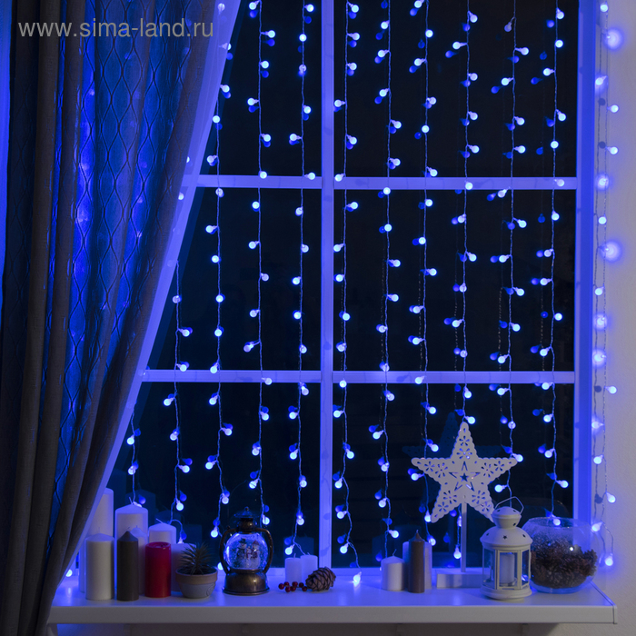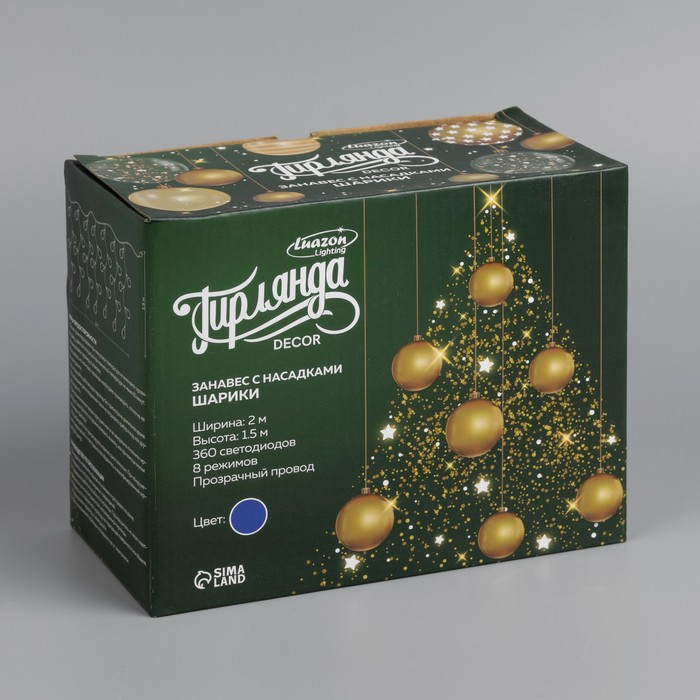 Гирлянда «Занавес» 2 × 1.5 м с насадками «Шарики», IP20, прозрачная нить, 360 LED, свечение синее, 8 режимов, 220 В