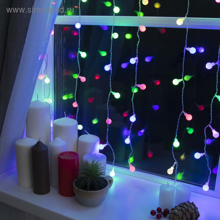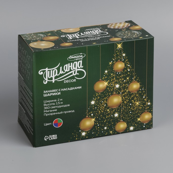 Гирлянда «Занавес» 2 × 1.5 м с насадками «Шарики», IP20, прозрачная нить, 360 LED, свечение мульти (RG/RB), мигание, 220 В