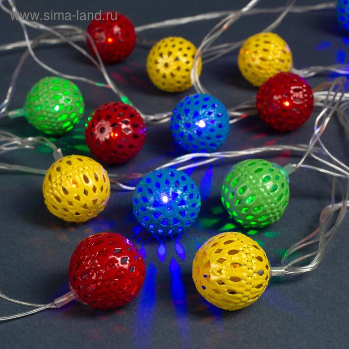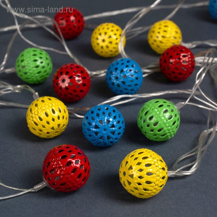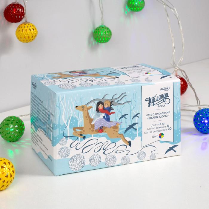 Гирлянда «Нить» 4 м с насадками «Шарик с узором», IP20, прозрачная нить, 20 LED, свечение мульти, 8 режимов, 220 В