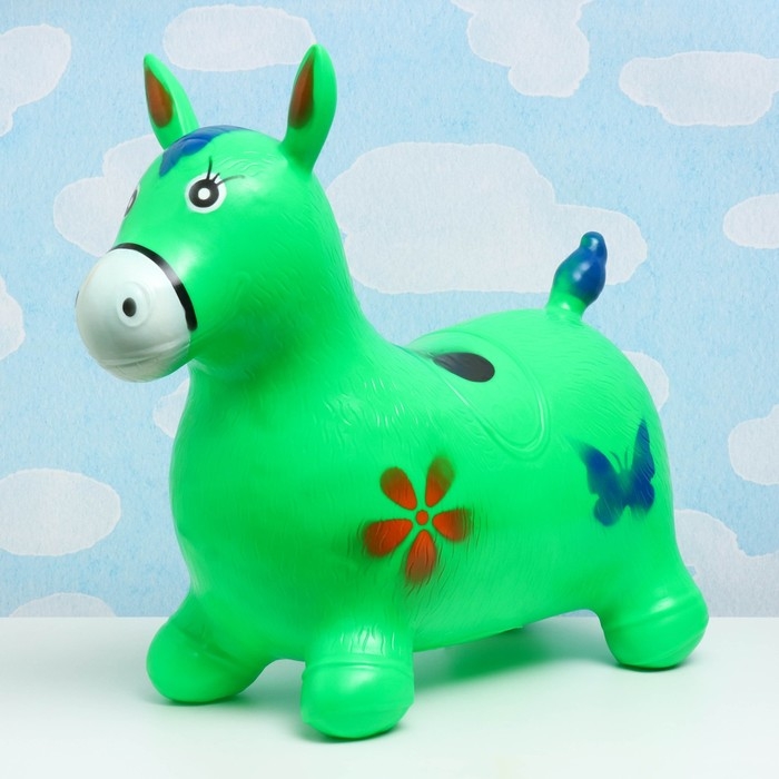 Игрушка - прыгун детская "Лошадка" резиновая надувная, 49х24см, зеленая