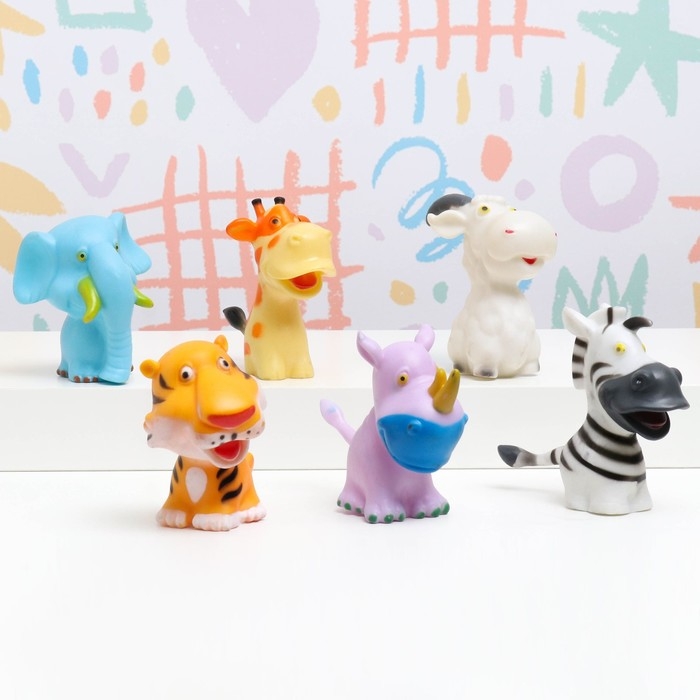Набор игрушек - пищалок для купания в ванне "Животные" 6 шт, резиновые, 10 см