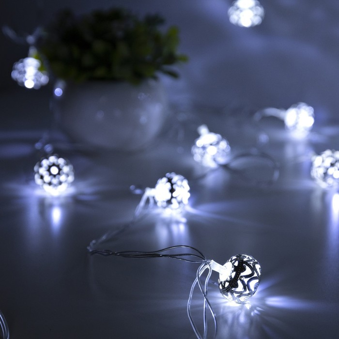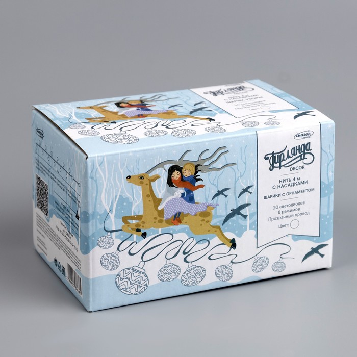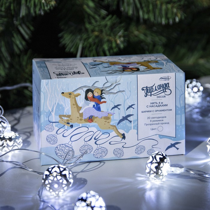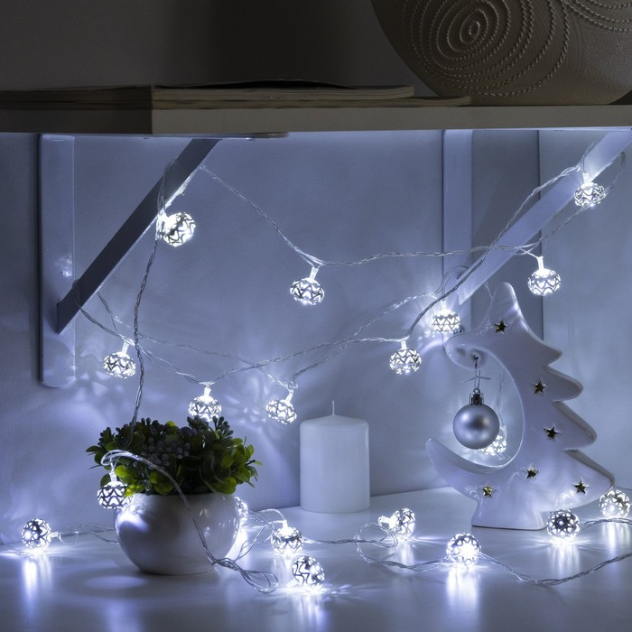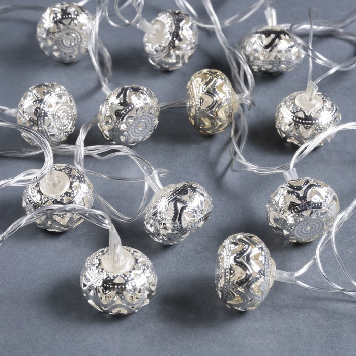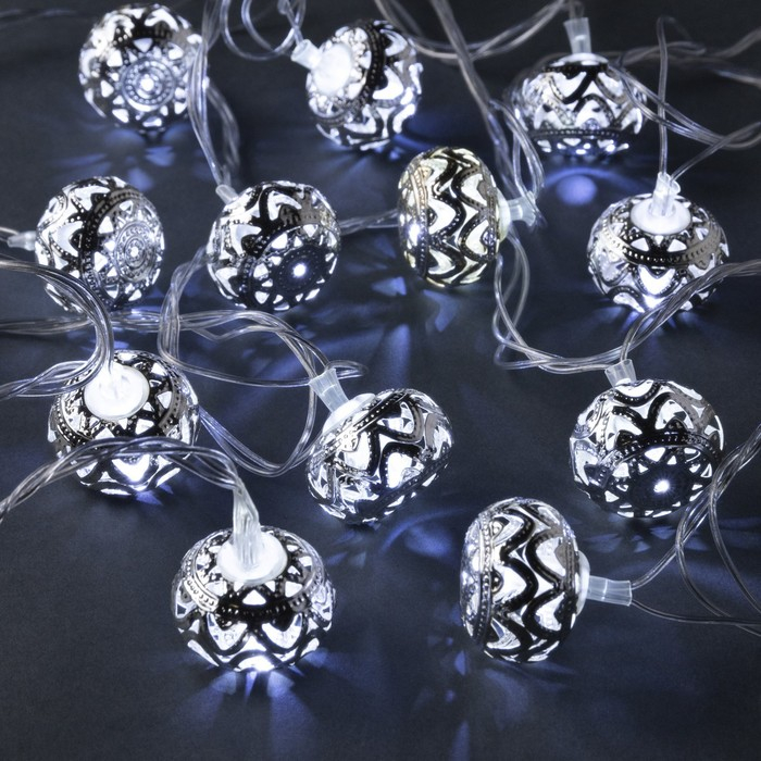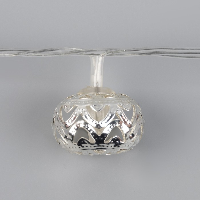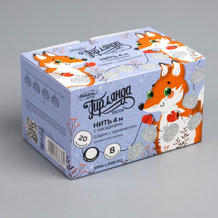 Гирлянда «Нить» 4 м с насадками «Шарик с орнаментом», IP20, прозрачная нить, 20 LED, свечение белое, 8 режимов, 220 В
