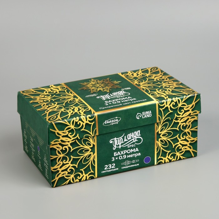 Гирлянда «Бахрома» 3 × 0.9 м, IP44, УМС, прозрачная нить, 232 LED, свечение синее, 220 В
