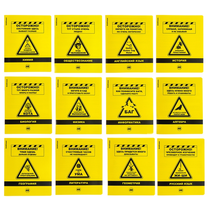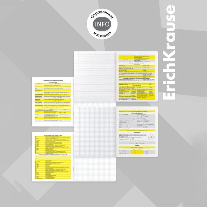 Комплект тетрадей по 12 основным учебным предметам: русский язык, литература, алгебра, геометрия, физика, химия, биология, география, история, обществознание, английский язык, информатика. Удобный вариант для приобретения на целый учебный год или в подарок. Каждая тетрадь объемом 48 листов имеет инфо-блок на 2 страницы с кратким изложением школьной программы. Упаковка - картонная обечайка в термоусадочной пленке.