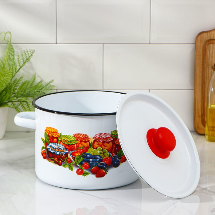 Кастрюля эмалированная, 4,5 л, рисунок МИКС, цвет белый