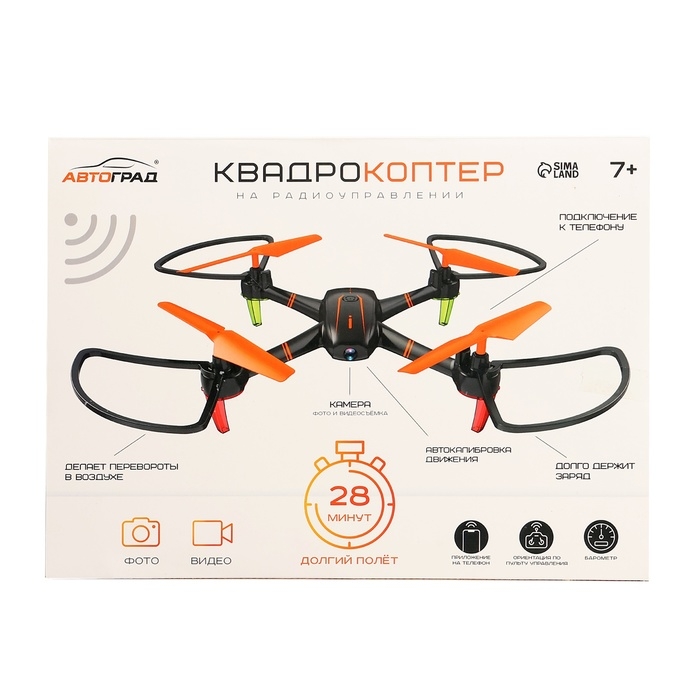 Квадрокоптер на радиоуправлении, время полёта: 28 минут, камера, Wi-Fi, барометр