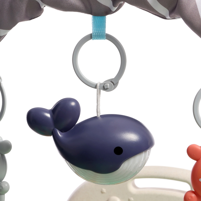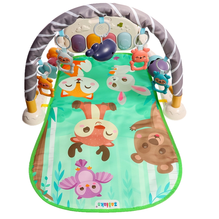Яркий музыкальный коврик — это настоящий развивающий центр для малыша. Заниматься на нём можно с 3 месяцев. С таким ковриком кроха быстрее научится держать головку и управлять телом, фокусировать взгляд на движущемся предмете и находить источник звука, а ещё потренирует тактильные навыки и мелкую моторику.