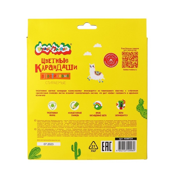 Пластиковые стираемые карандаши "Каляка-Маляка"® изготовлены из высококачественного пластика, они идеально стираются ластиком на корпусе карандаша, позволяя быстро устранить недочеты и помарки!