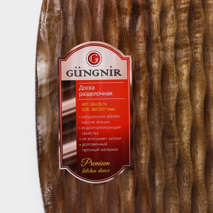 Доска разделочная с ручкой «Рельеф», 36×22×1,5 см, акация