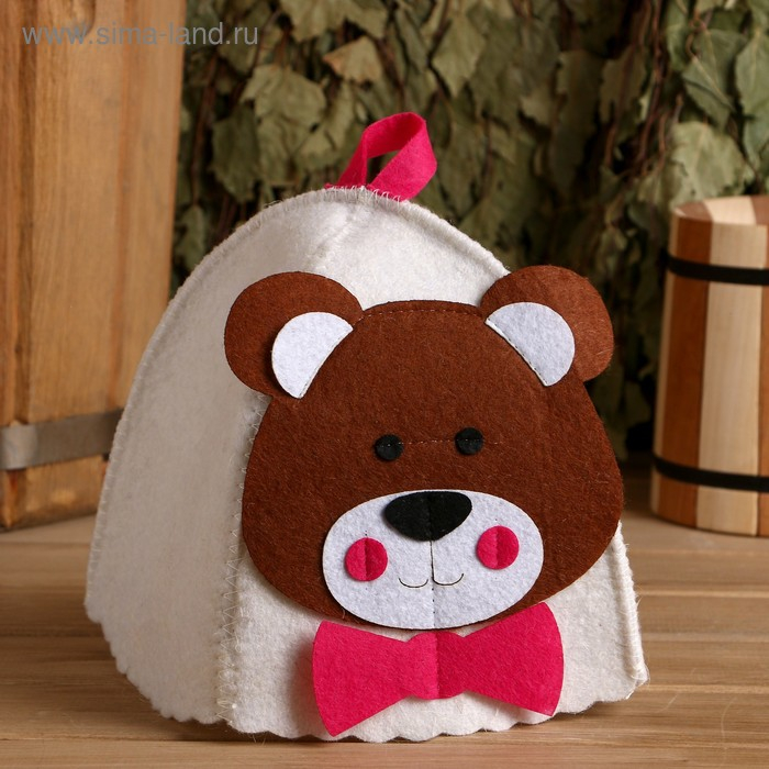 Шапка для бани с детской аппликацией "Медвежонок" войлок