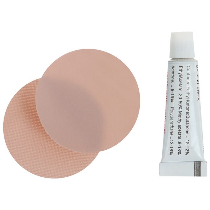 - Ремкомплект, состоящий из двух заплаток и клея, позволяет быстро устранить повреждения на поверхности изделия.