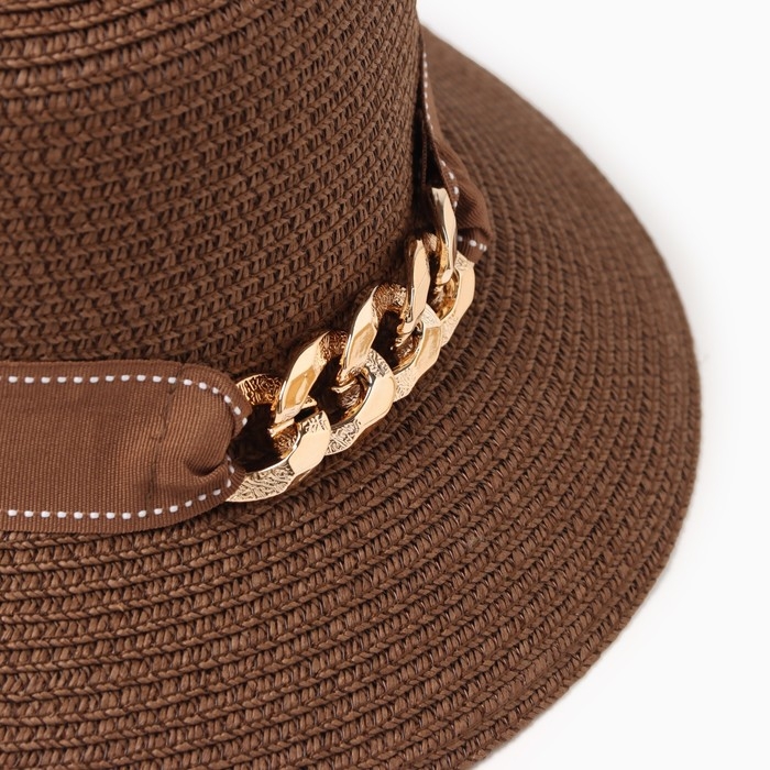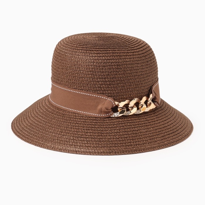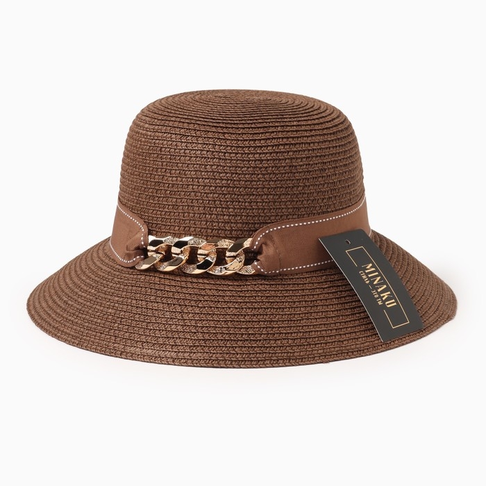 Шляпа женская с цепочкой MINAKU цвет коричневый, размер 56-58