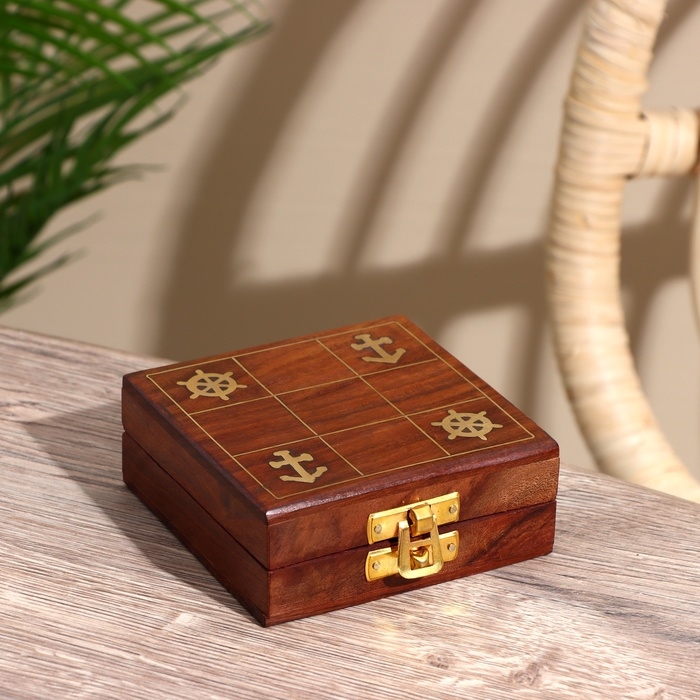 Игра крестики-нолики "Море" дерево, латунь 10х10х4 см