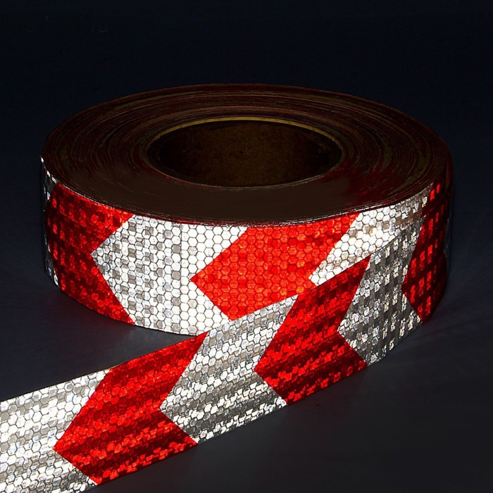 Светоотражающая лента, самоклеящаяся, красно-белая, 5 см х 25 м