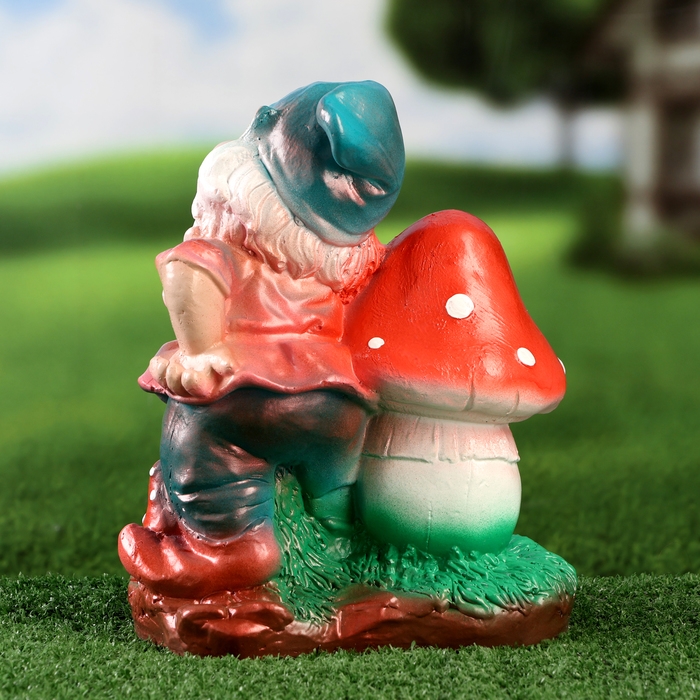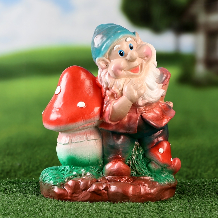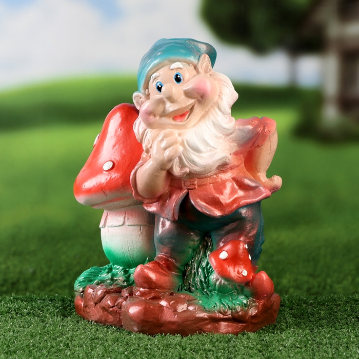 Садовая фигура "Добрый гном с грибом" 26см